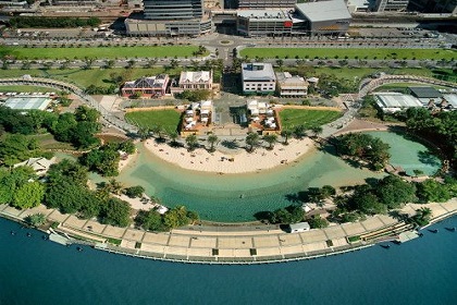 【南岸公園】南岸公園是世界博覽會(huì)的舊址,園內(nèi)有水質(zhì)清澈的柯達(dá)海灘和青蔥的林蔭草地,在這里,您可以體驗(yàn)一下布里斯班人的休閑生活。(約40分鐘)