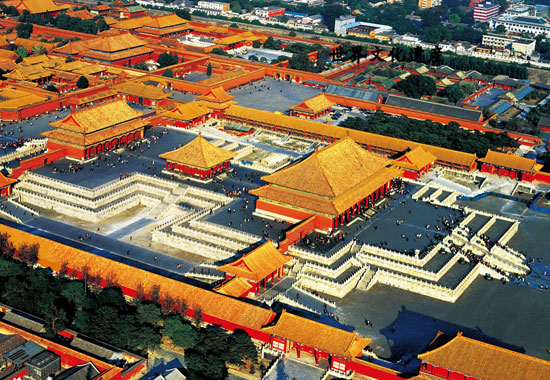自明代皇帝朱棣在奪取帝位后,決定遷都北京,即開始營造紫禁城宮殿,至明永樂十八年(1420年)落成。依照中國古代星象學(xué)說位于中天,乃天帝所居,天人對應(yīng), 是以皇帝的居所又稱紫禁城。故宮占地72萬平方米,建筑面積約15萬平方米,共有殿宇9000余間,都是磚木結(jié)構(gòu)、黃琉璃瓦頂、青白石底座飾以金碧輝煌的彩繪,是世界上現(xiàn)存規(guī)模最大、最完整的古代皇家建筑群。