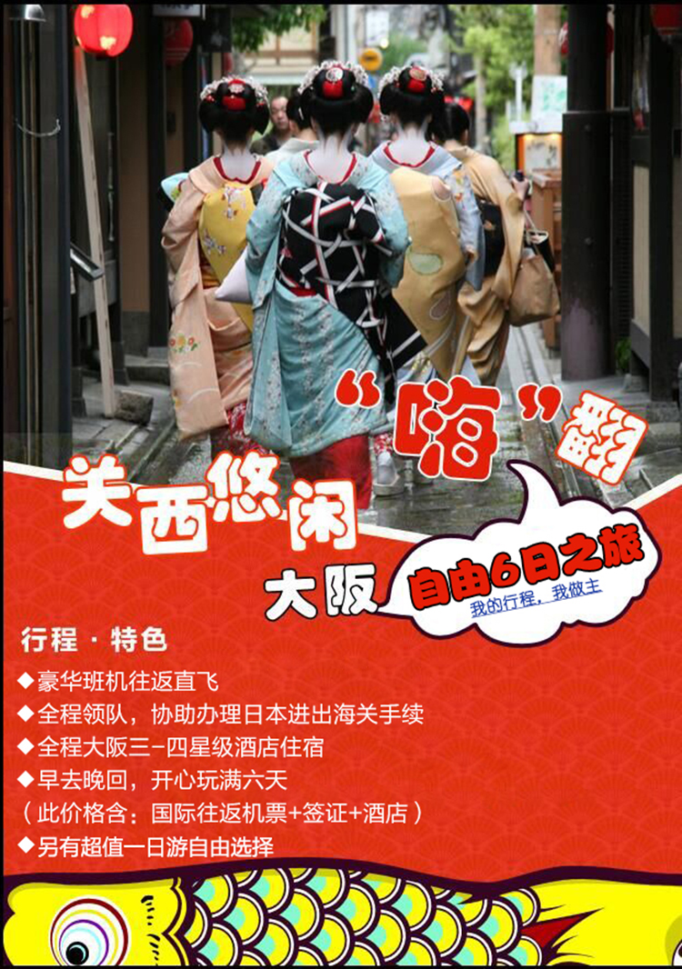 【關(guān)西悠閑 “嗨”翻-大阪自由6日之旅】早去晚回,開心玩滿六天【編號(hào):MJRB3】