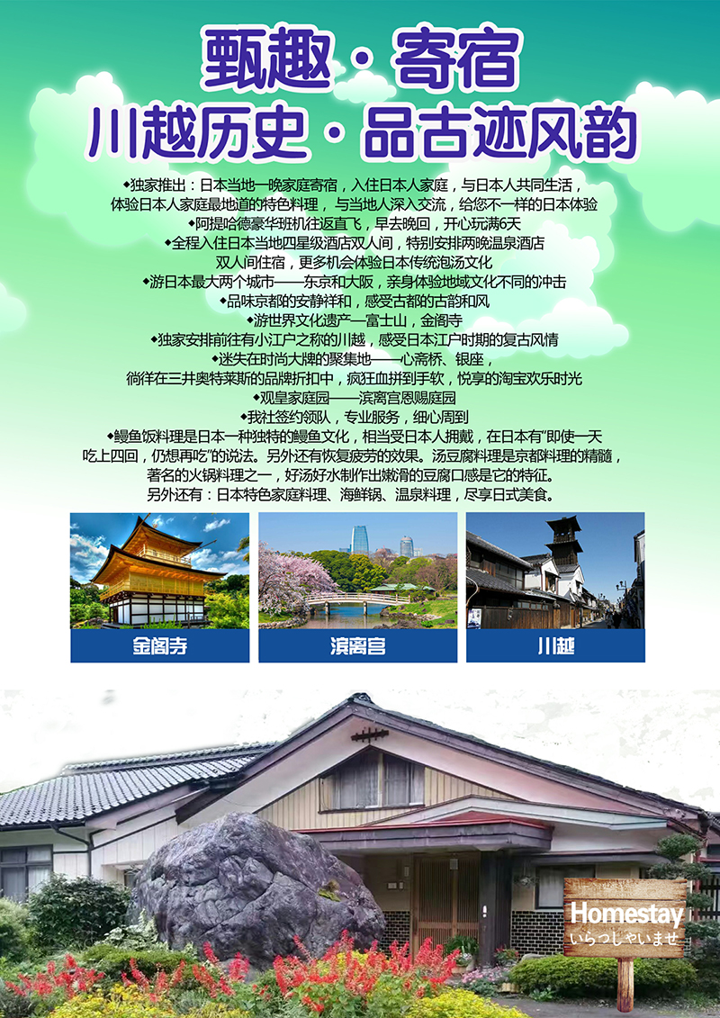 【甄趣? 品古跡風韻日本6日游、寄宿日本家庭】民宿與寄宿家庭的體驗【編號:MJRB6】