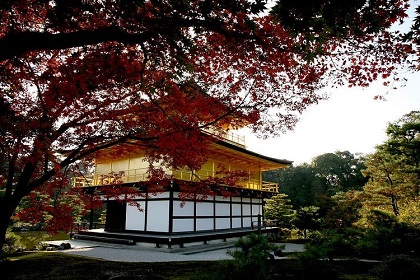 【金閣寺】是一間禪宗寺廟,正式的名稱為鹿苑寺。 公元1397年,隱退的將軍足利義滿開始興建金閣殿,作為他新宅邸的一部分。在公元1408年義滿公過世后,金閣寺才改為禪寺。金閣寺曾多次被燒毀包括應仁之亂,對上一次在1950年被一位宗教狂熱的僧人自焚而燒毀,目前的建筑是在公元1955年重建的。