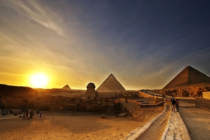 早餐后前往開羅近郊——吉薩參觀游覽:這里有著名的埃及三大金字塔,獅身人面像(大約游覽時(shí)間:1.5小時(shí)左右)。近距離領(lǐng)略人造建筑的世界奇跡,胡夫金字塔首先是世界上最大的金字塔,帶您探索“千年之謎”,讓您親身游歷幾千年的埃及古老文明,驚嘆古埃及人的聰慧和堅(jiān)韌。午餐于薩拉丁城堡對面的alazha公園內(nèi)豪華美景studio`misr餐廳享用埃及地道的鴿子餐,薩拉丁城堡近在眼前,不遠(yuǎn)處,您也可以眺望埃及的母親河——尼羅河。之后游覽藏有無數(shù)珍寶及手工藝品的埃及博物館(入內(nèi)參觀大約游覽時(shí)間:1.5小時(shí)左右),在這里陳列著響譽(yù)中外的圖坦卡國王墓中所發(fā)掘的稀世珍寶,22K黃金制作的黃金內(nèi)棺和金箔王座更是不容錯(cuò)過,嘆為觀止。晚餐后入住酒店休息。