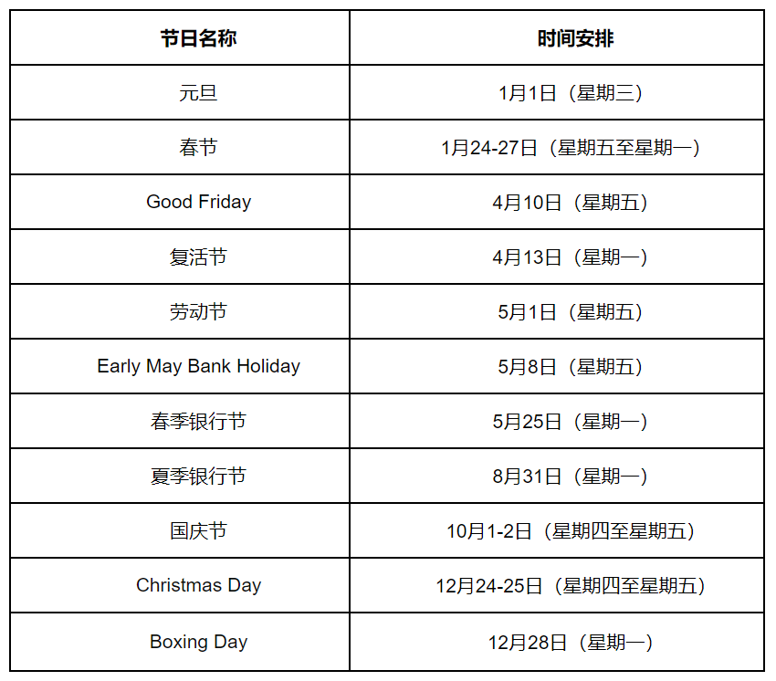 另外小編還根據各領事館放假通知整理出來2020其他的放假時間供青友們參考~