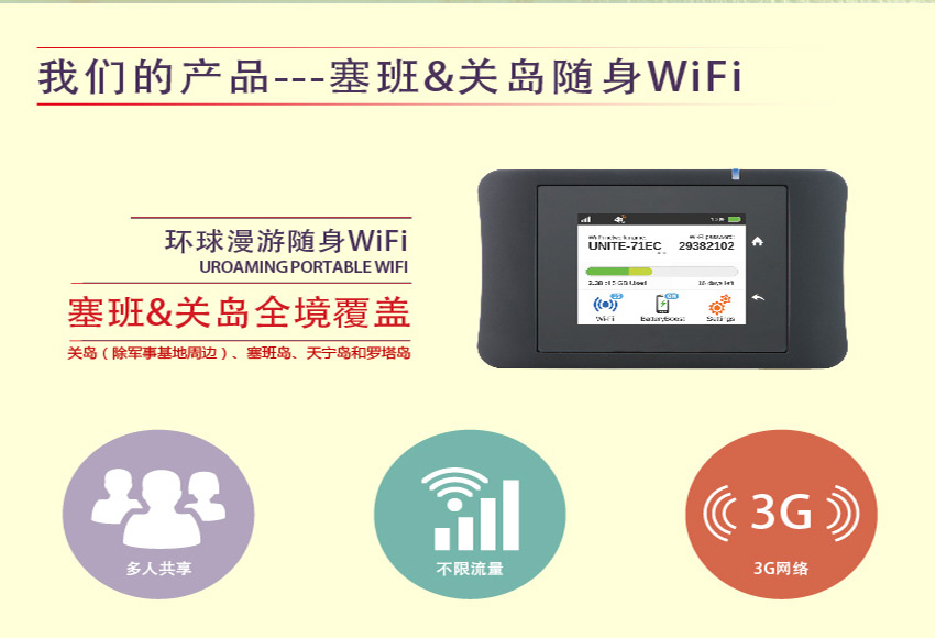 【關(guān)島、塞班隨身wifi租賃 不限流量】3G網(wǎng)絡(luò)【編號:sbwf】